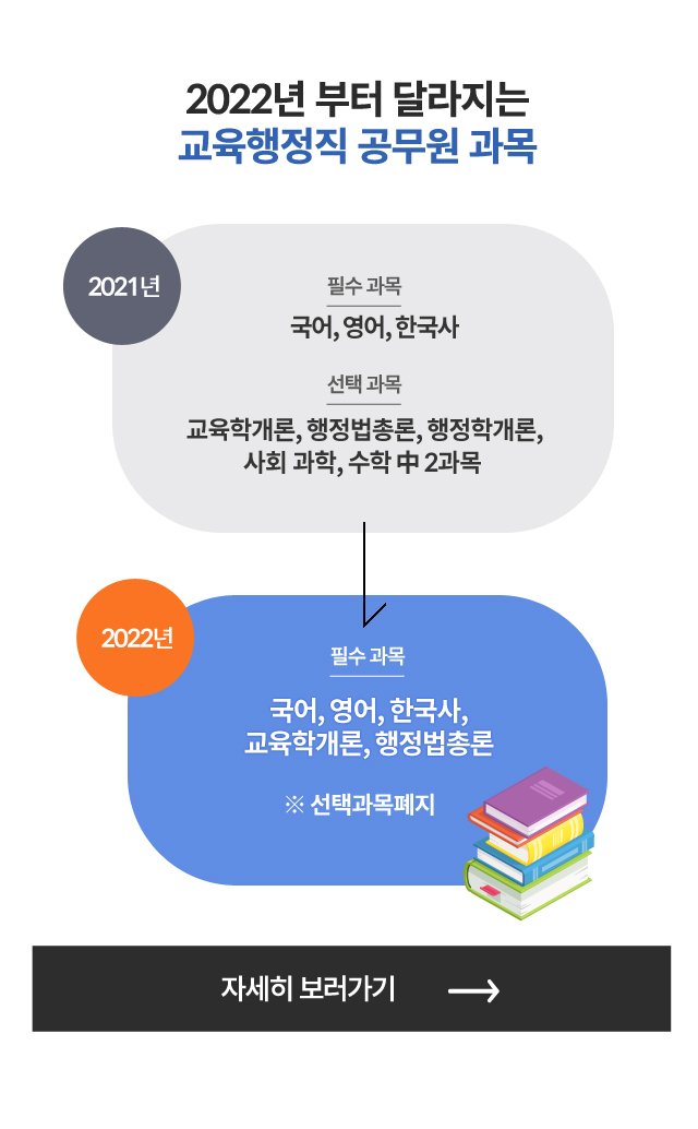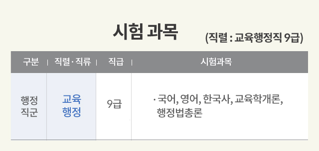 국어, 영어, 한국사, 교육학개론, 행정법총론(교재별도)