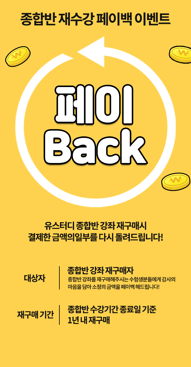 - ① 유스터디가 제공하는 인터넷강의 서비스 (단과 또는 종합반) 의 결제일로부터